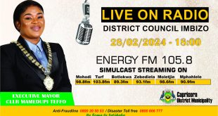 The Executive Mayor of Capricorn District Municipality Cllr Mamedupi Teffo gave an account on the status of service delivery in the Capricorn District Municipality. This was done through a District Council Imbizo held live on Energy FM SA which was a simulcast streaming on Mohodi FM RADIO TURF 103.8FM Moletsi …